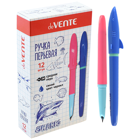 Ручка перьевая " deVente " Shark, синяя, перо среднее M (Medium), баллончик 0,8 мл, пластиковый держатель