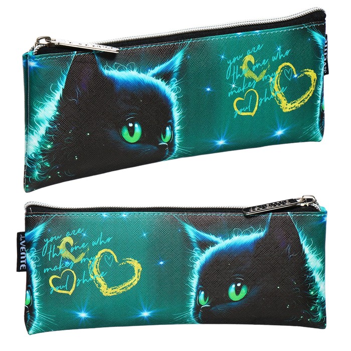 Пенал мягкий, 1 отделение, 90 х 215 х 10 мм, плоский, deVENTE, Black Cat, искусственная кожа 7024447