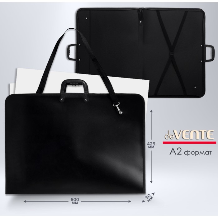 Папка для чертежей и рисунков A3, 520 х 370 х 12мм, с ручкой, пластиковая, 2 отделения, плечевой ремень, deVENTE