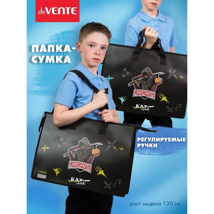 Папка А4 с ручками текстиль, 30мм, 340 х 250, deVENTE SuperHero, карман-сетка, регулирующие ручки, пластик