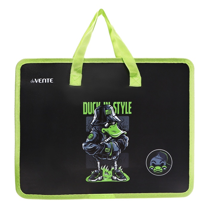 Папка с ручками А4, 335 х 260 х 100 мм, пластиковая, ручки-текстиль, deVENTE Cool Duck чёрная/зелёная