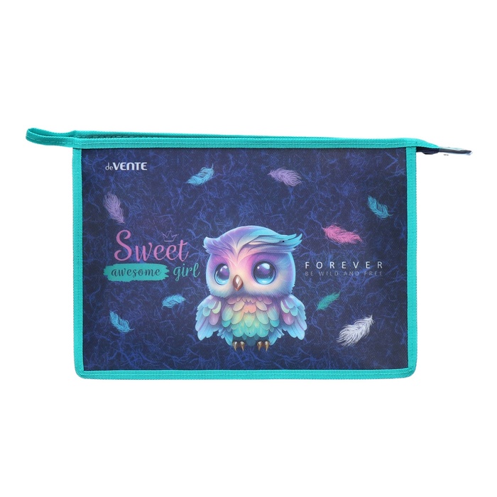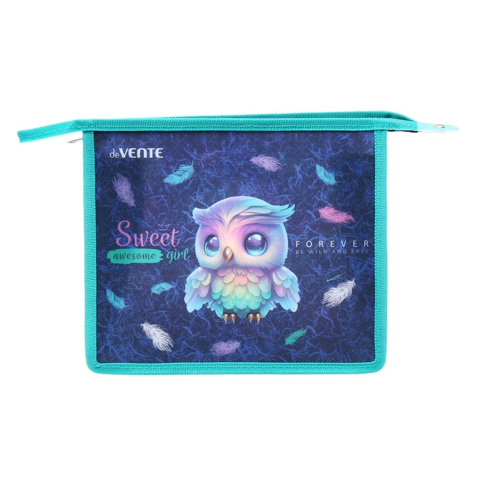 Папка для тетрадей А5, 243 х 200 х 80 мм, молния сверху, пластиковая, de VENTE Happy Owl, для девочек