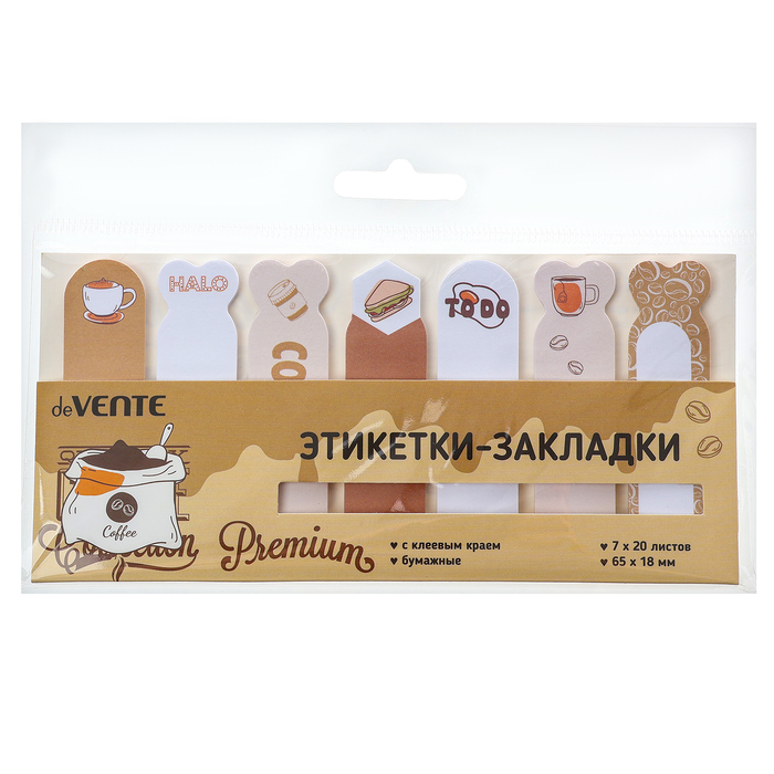 Закладки с клеевым краем 18 х 65 мм, 7 цветов х 20 листов, бумажные, deVENTE Coffee 2011012