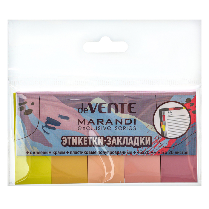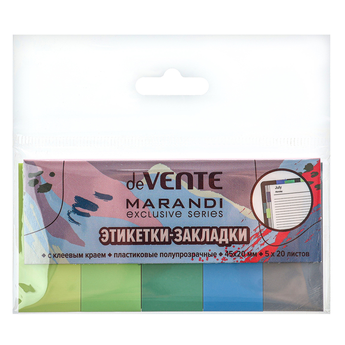 Закладки с клеевым краем пластиковые, 20 х 45мм, 5 цветов х 20 листов, deVENTE Marandi, блистер, 2011205