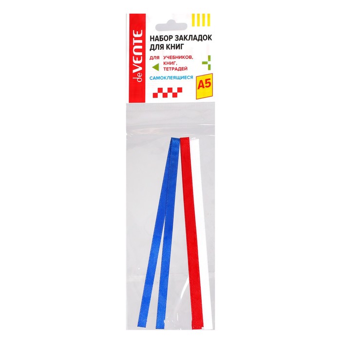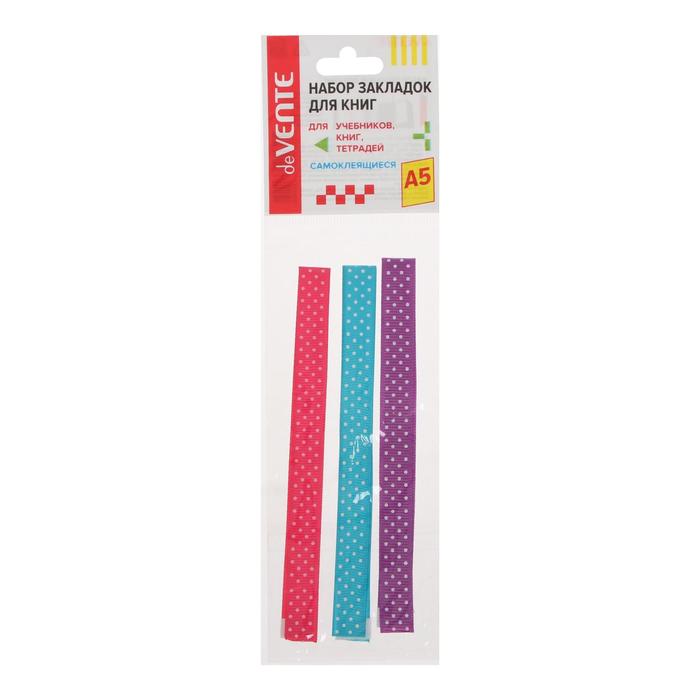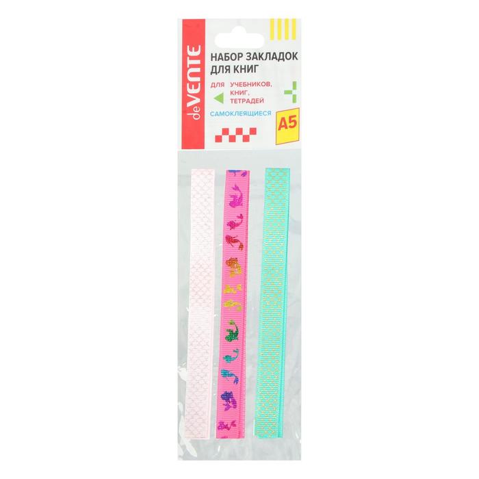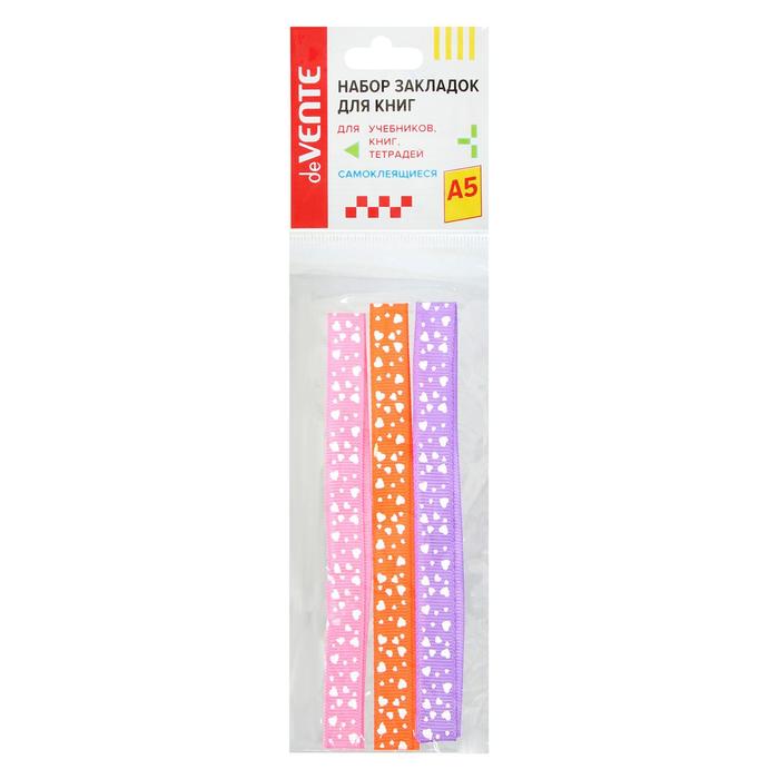 Набор закладок-ляссе deVENTE самоклеящихся для книг A5, 12 x 290 мм, 3 двусторонних широких ленты
