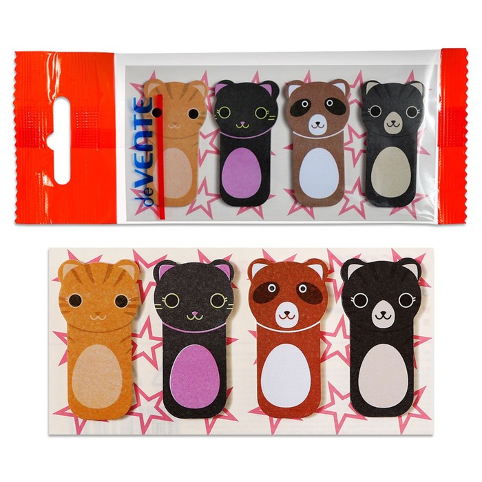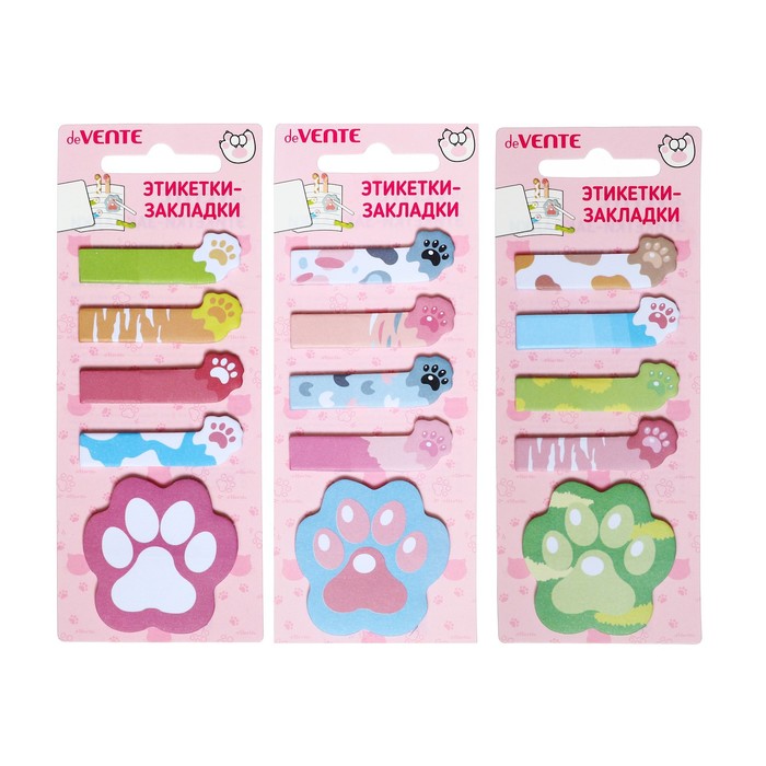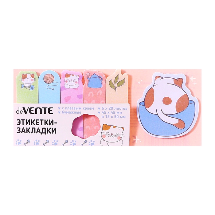 Закладки с клеевым краем 15 х 48 мм/45 х 45мм, 5 цветов по 20 листов, бумажные, deVENTE Cat paws