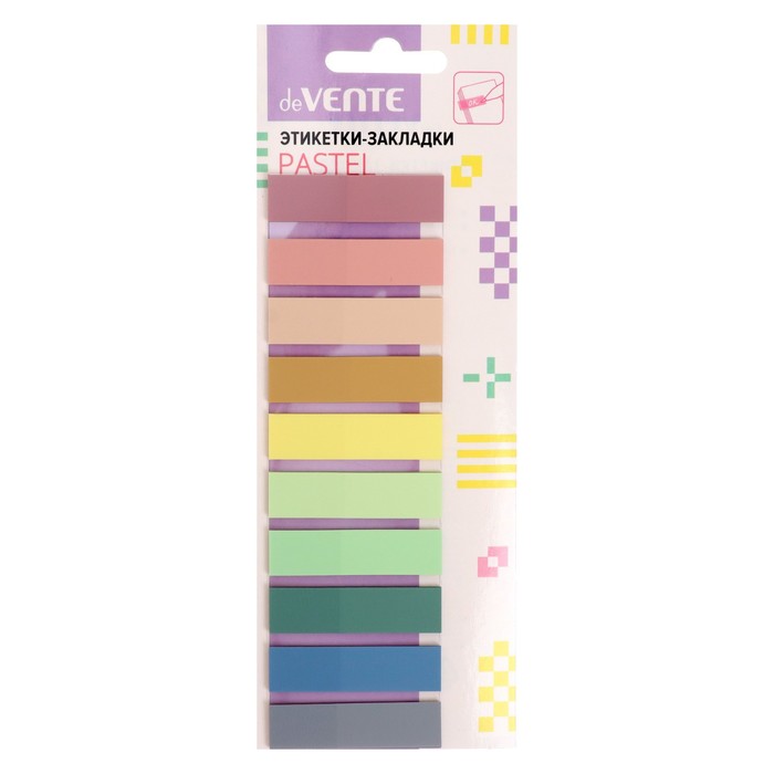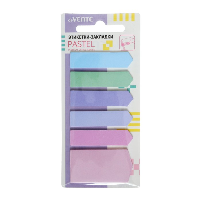 Закладки с клеевым краем (стикеры) 11 х 44 мм/24 х 44 мм, 6 цветов по 20 листов, бумажные, deVENTE Pastel, в пластиковом пакете