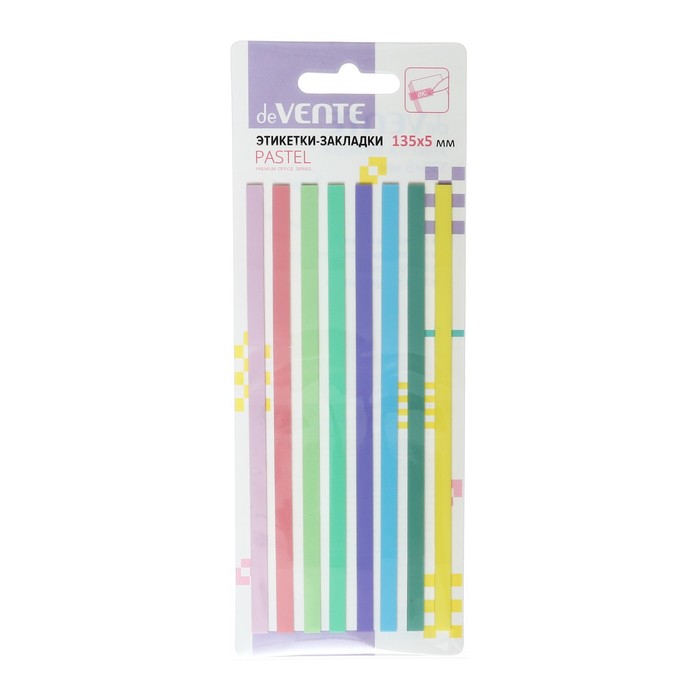 Закладки с клеевым краем, 5 х 135 мм, 8 цветов по 20 листов, пластиковые, deVENTE Pastel, блистер