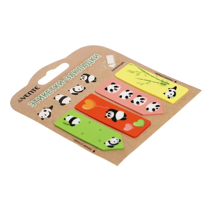 Закладки с клеевым краем (стикеры) 20 х 55 мм, 4 цвета по 20 листов , пластиковые deVENTE Panda