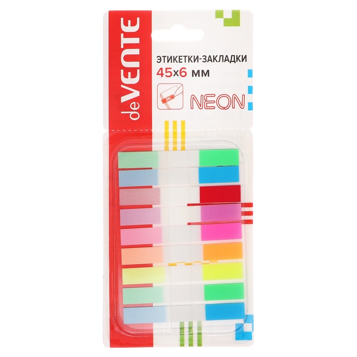 Закладки с клеевым краем 6 х 45 мм, 9 цветов по 10 листов, Z-сложение, пластиковые, deVENTE, Neon