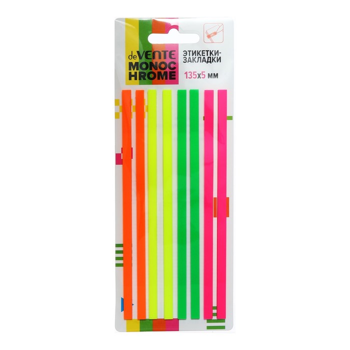Закладки с клеевым краем, 5 х 135 мм, 4 цвета по 20 листов, пластиковые, deVENTE MonoChrome, картонный блистер