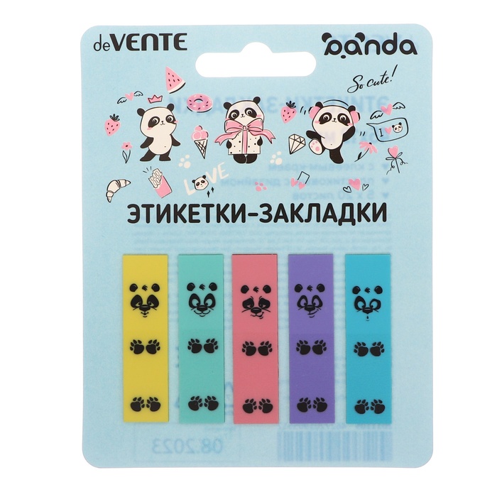 Закладки с клеевым краем, пластиковые, 12 х 45 мм, deVENTE Panda, 5 цветов х 20 листов, в блистере
