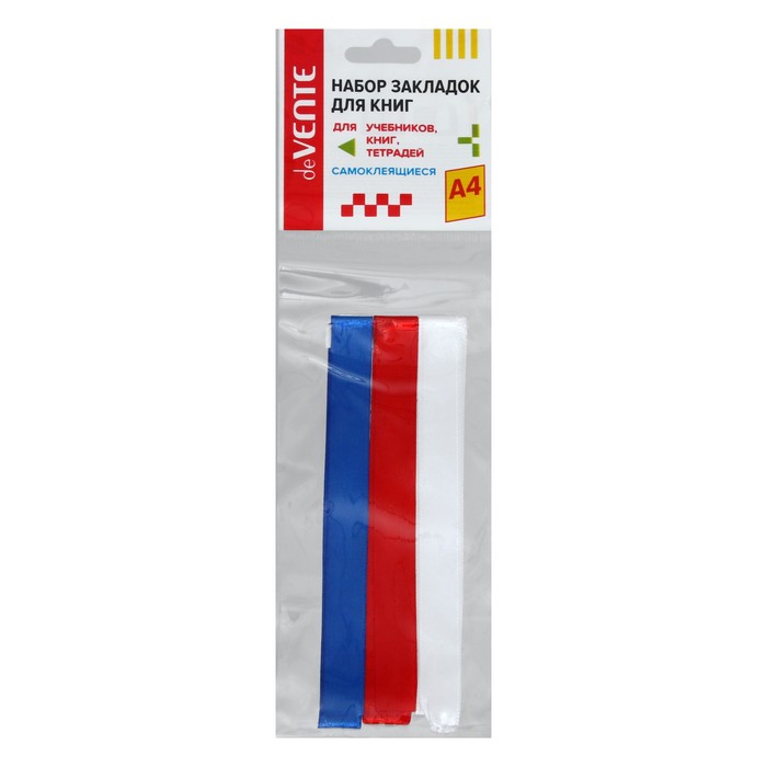 Закладки-ляссе с клеевым краем для формата А4, deVENTE. "Триколор", 12 x 400 мм для книг A4, 3 широкие ленты