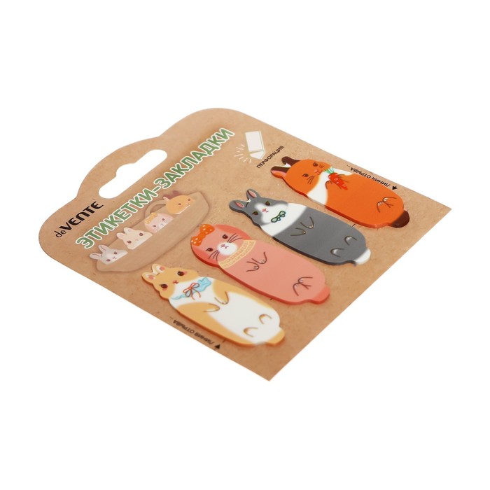Закладки с клеевым краем (стикеры) 20 х 55 мм, 4 цвета по 20 листов , пластиковые deVENTE Funny Rabbit