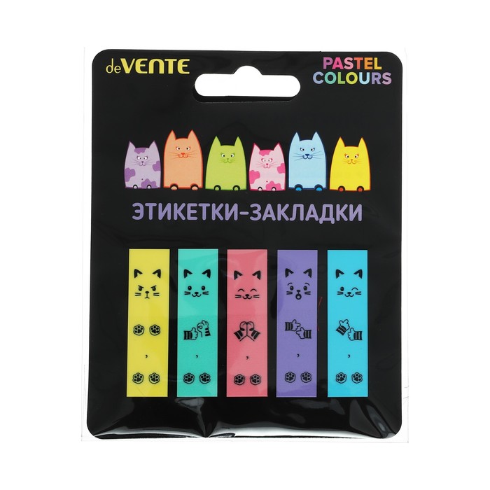 Закладки с клеевым краем 12 х 45 мм, 5 цветов по 20 листов, пластиковые, deVENTE. Cats, в пластиковом пакете, блистер