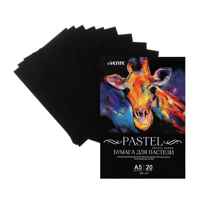 Бумага для пастели А5, deVENTE, набор 20 листов, 120 г/м2, чёрная, в пакете