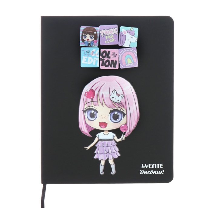 Дневник универсальный для 1-11 класса Fancy Girl, твёрдая обложка, искусственная кожа, шелкография, ляссе, 80 г/м2