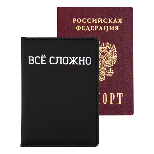 Обложка для паспорта " deVente " 10*14см искусственная кожа Всё сложно, поролон, шелкография, отстрочка, 3 отделения для визиток, пластиковый пакет, европодвес