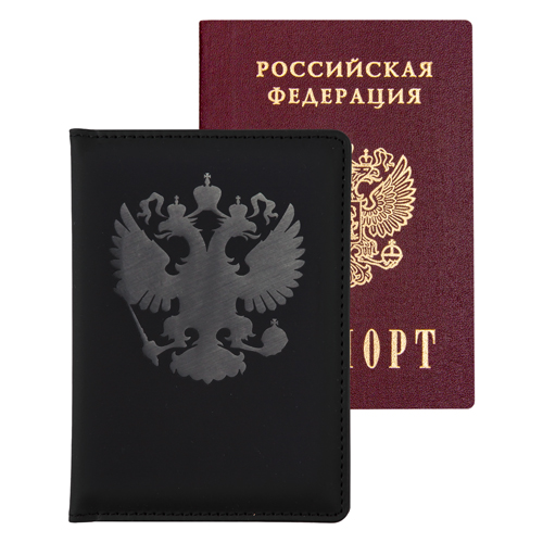 Обложка для паспорта " deVente " 10*14см искусственная кожа Герб, черная, поролон, термотиснение, отстрочка, 3 отделения для визиток, пластиковый пакет, европодвес