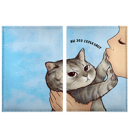 Обложка для паспорта " deVente " 10*14см искусственная кожа Вы это серьезно? поролон, цветная печать, отстрочка, 1 отделение для визиток, пластиковый пакет, европодвес