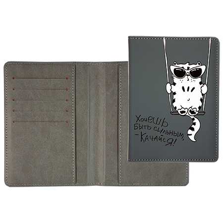 Обложка для паспорта " deVente " 10*14см искусственная кожа Хочешь быть сильным - качайся! поролон, шелкография, отстрочка, 5 отделений для визиток, пластиковый пакет, европодвес
