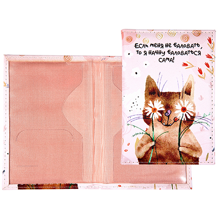 Обложка для паспорта " deVente " 10*14см искусственная кожа Если меня не баловать, то я начну баловаться сама! поролон, отстрочка, цветная печать, 1 отделение для визиток, пластиковый пакет, европодвес