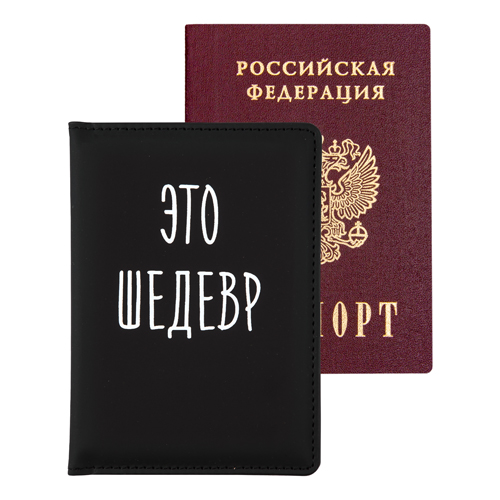 Обложка для паспорта " deVente " 10*14см искусственная кожа Это шедевр, поролон, шелкография, отстрочка, 3 отделения для визиток, пластиковый пакет, европодвес