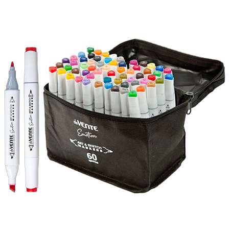 Набор маркеров для скетчинга " deVente " Emotion 60цв двухсторонние, 1,0-5,0мм, пулевидный/скошенный, трехгранный корпус, в текстильной сумке