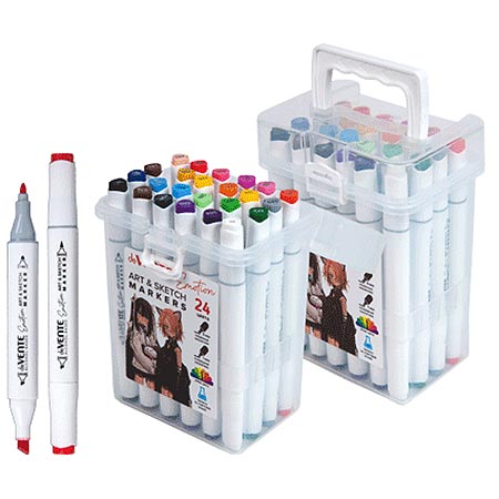 Набор маркеров для скетчинга " deVente " Emotion 24цв двухсторонние, 1,0-5,0мм, пулевидный/скошенный, трехгранный корпус, в пластиковом боксе