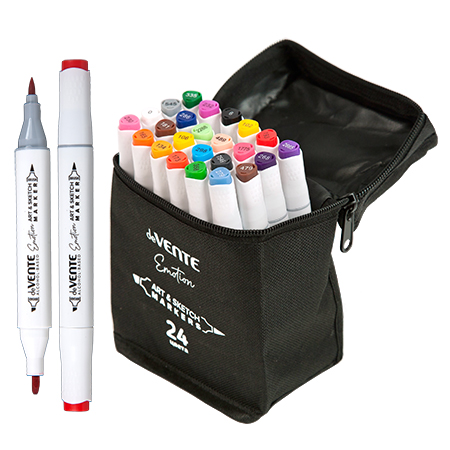 Набор маркеров для скетчинга " deVente " Emotion 24цв двухсторонние, 2,0-5,0мм, кистевидный/скошенный, трехгранный корпус, в текстильной сумке