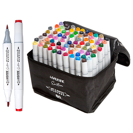 Набор маркеров для скетчинга " deVente " Emotion 80цв двухсторонние, 2,0-5,0мм, кистевидный/скошенный, трехгранный корпус, в текстильной сумке