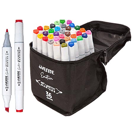 Набор маркеров для скетчинга " deVente " Emotion 36цв двухсторонние, 1,0-5,0мм, пулевидный/скошенный, трехгранный корпус, в текстильной сумке