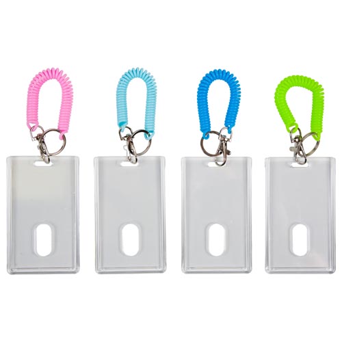 Бейдж " deVente " 110*70мм, Classic, вертикальный, прозрачный, на пластиковой пружине с металлическим карабином и кольцом, ассорти 6 цветов (без возможности выбора цвета), пластик