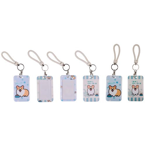 Бейдж " deVente " 110*70мм, Hey Corgi, вертикальный, с петлей из искусственной кожи, металлическим карабином и кольцом, ассорти, 2 дизайна (без возможности выбора дизайна), пластик