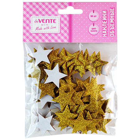 Набор наклеек " deVente " Gold stars, объемные из фоамирана, 60шт, пластиковый пакет с европодвесом