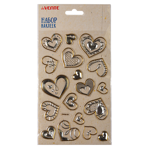 Набор наклеек " deVente " Gold-silver hearts, объемные с золотым и серебряным тиснением, 12*19см, пластикоый пакет с европодвесом