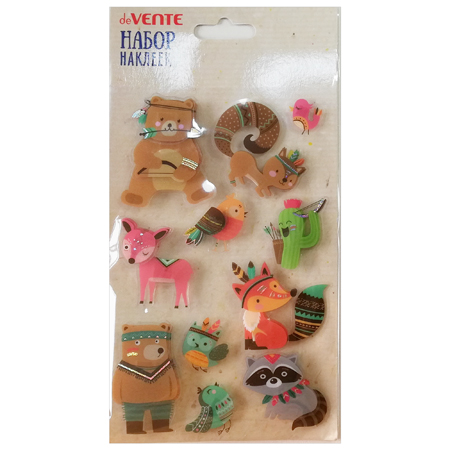 Набор наклеек " deVente " Animals, объемные с блеском, 10,5*18см, пластиковый пакет с европодвесом