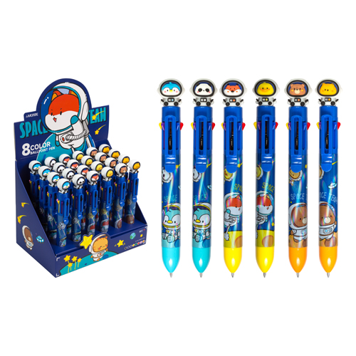 Ручка шариковая автоматическая " deVente " Space Team с декоративным элементом, 8 цветов 0,7мм, основа маслянная, стержень сменный, ассорти 6 дизайнов, в картонном дисплее