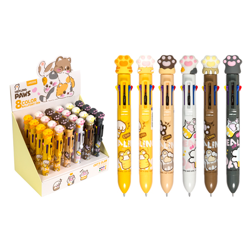 Ручка шариковая автоматическая " deVente " Cat Paw с декоративным элементом, 8 цветов 0,7мм, основа маслянная, стержень сменный, ассорти 3 дизайна, в картонном дисплее