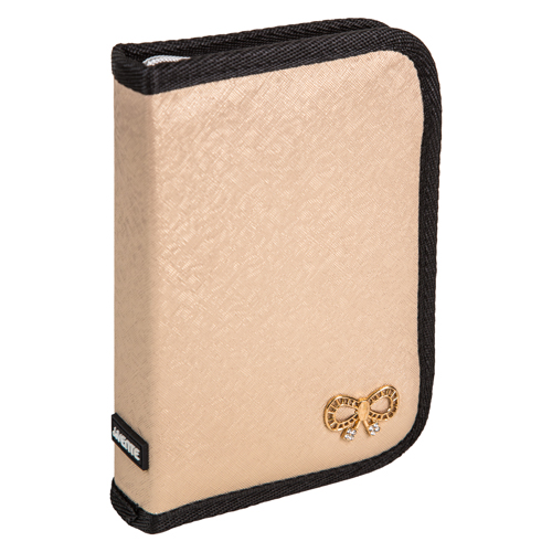 Пенал " deVente " 1 отделение 21*14*4см, Bow, прямоугольный, с двумя дополнительными створками, с металлической брошкой, на молнии, искусственная кожа, золотистый металлик