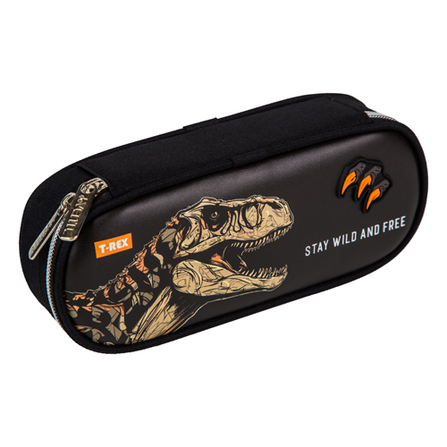 Пенал " deVente " 1 отделение 21*8*5см T-Rex, для 35 предметов, овальный, с внутренним органайзером-створкой, на молнии, текстиль, аппликация
