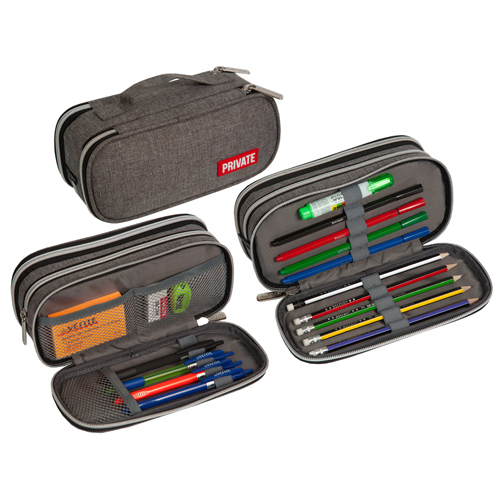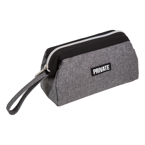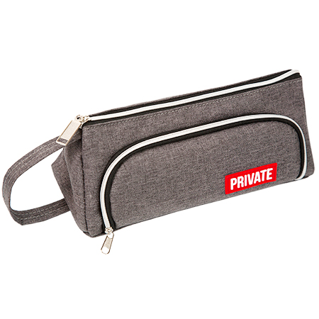 Пенал " deVente " 1 отделение 20,5*12см, Private, серый, треугольный, на молнии, объемный карман на молнии с плавающей перегородкой, с ручкой, текстиль