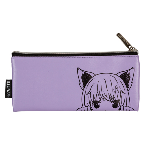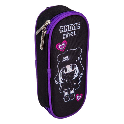 Пенал " deVente " 1 отделение 21*8*5см Anime Girl, для 50 предметов, овальный, с внутренним органайзером-створкой, на молнии, текстиль