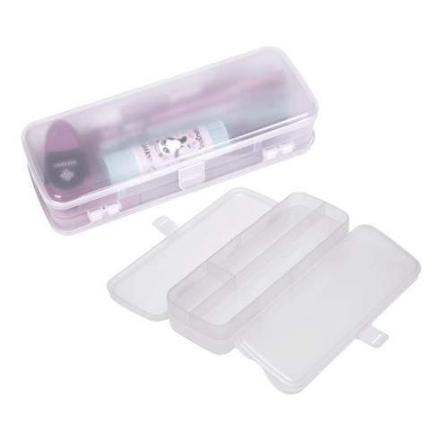 Пенал " deVente " 4 отделения 21*7,5*4,5см, Box, двойной, прямоугольный, пластик, полупрозрачный, крышки с двух сторон, на защелках, белый, пластиковый пакет