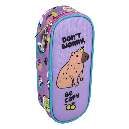 Пенал " deVente " 1 отделение 21*8*5см Capybara, для 50 предметов, овальный, с внутренним органайзером-створкой, на молнии, текстиль