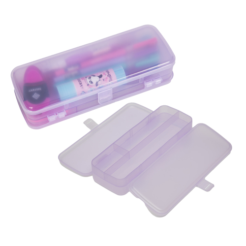 Пенал " deVente " 4 отделения 21*7,5*4,5см, Box, двойной, прямоугольный, пластик, полупрозрачный, крышки с двух сторон, на защелках, сиреневый, пластиковый пакет