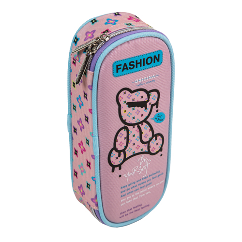 Пенал " deVente " 1 отделение 21*8*5см Fashion Bear, для 50 предметов, овальный, с внутренним органайзером-створкой, на молнии, текстиль