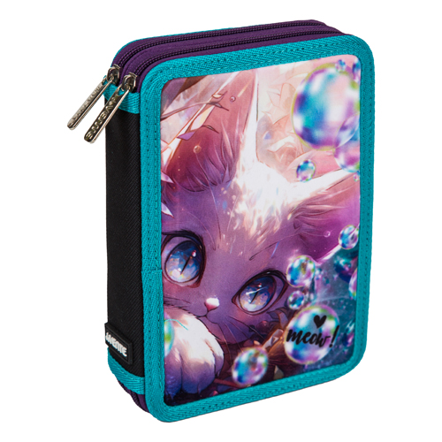 Пенал " deVente " 2 отделения 21*14*5,2см, Lovely Cat, прямоугольный, на молнии, текстиль и интерьерный флок