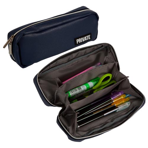 Пенал " deVente " 1 отделение 21*9*5см, Private, матовая искусственная кожа, на молнии, 3 внутренних отделения с перегородками, аппликация, темно-синий