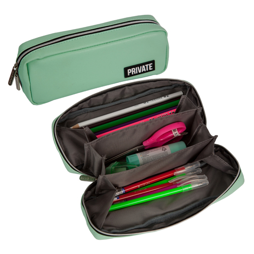Пенал " deVente " 1 отделение 21*9*5см Private, с перегородками, на молнии, аппликация, пастельный мятный, матовая искусственная кожа